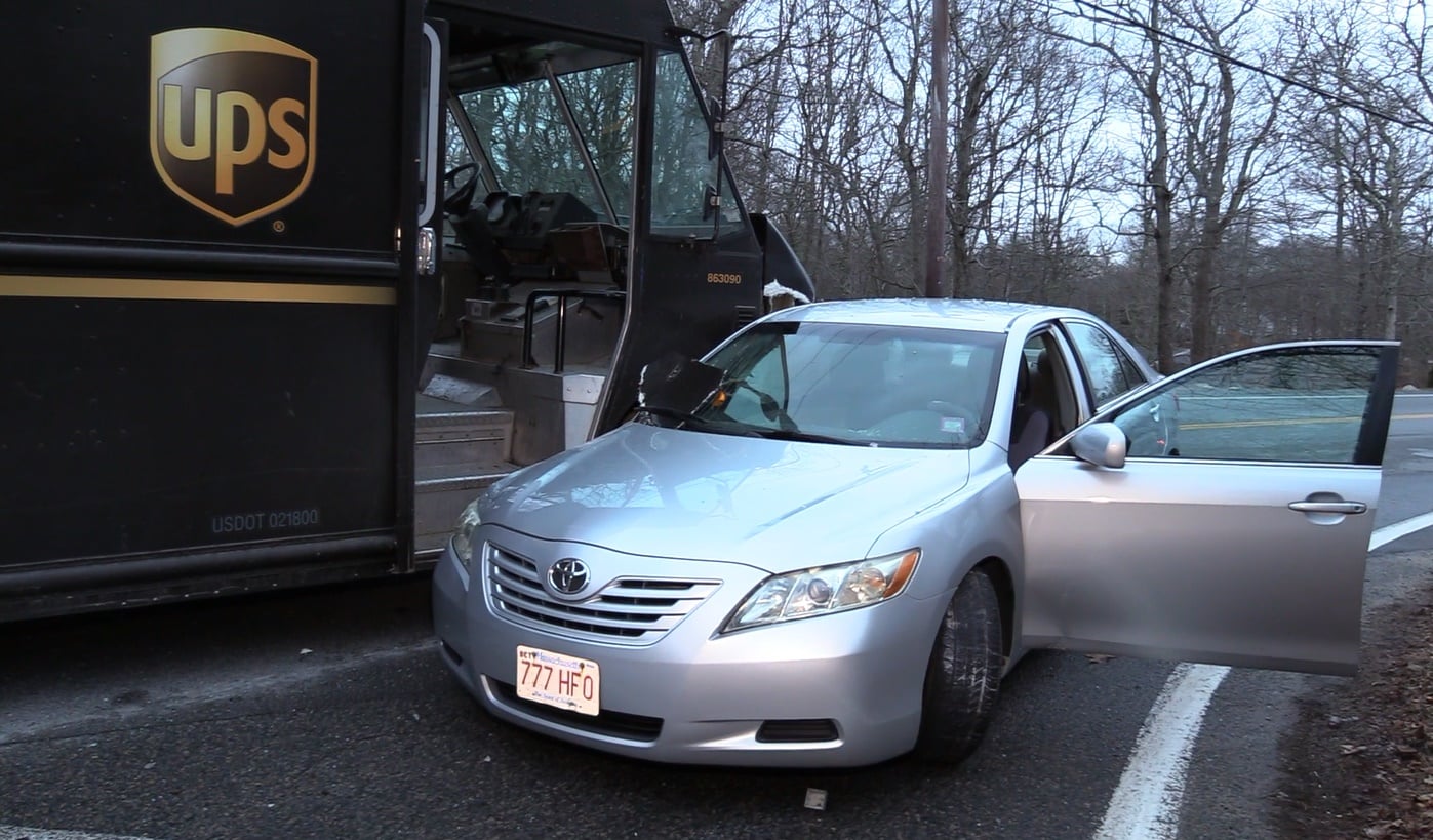 BREWSTER – As you will see in the following HN Video, a woman was arrested after a crash with a UPS box truck shortly after 6:00 p.m. today.