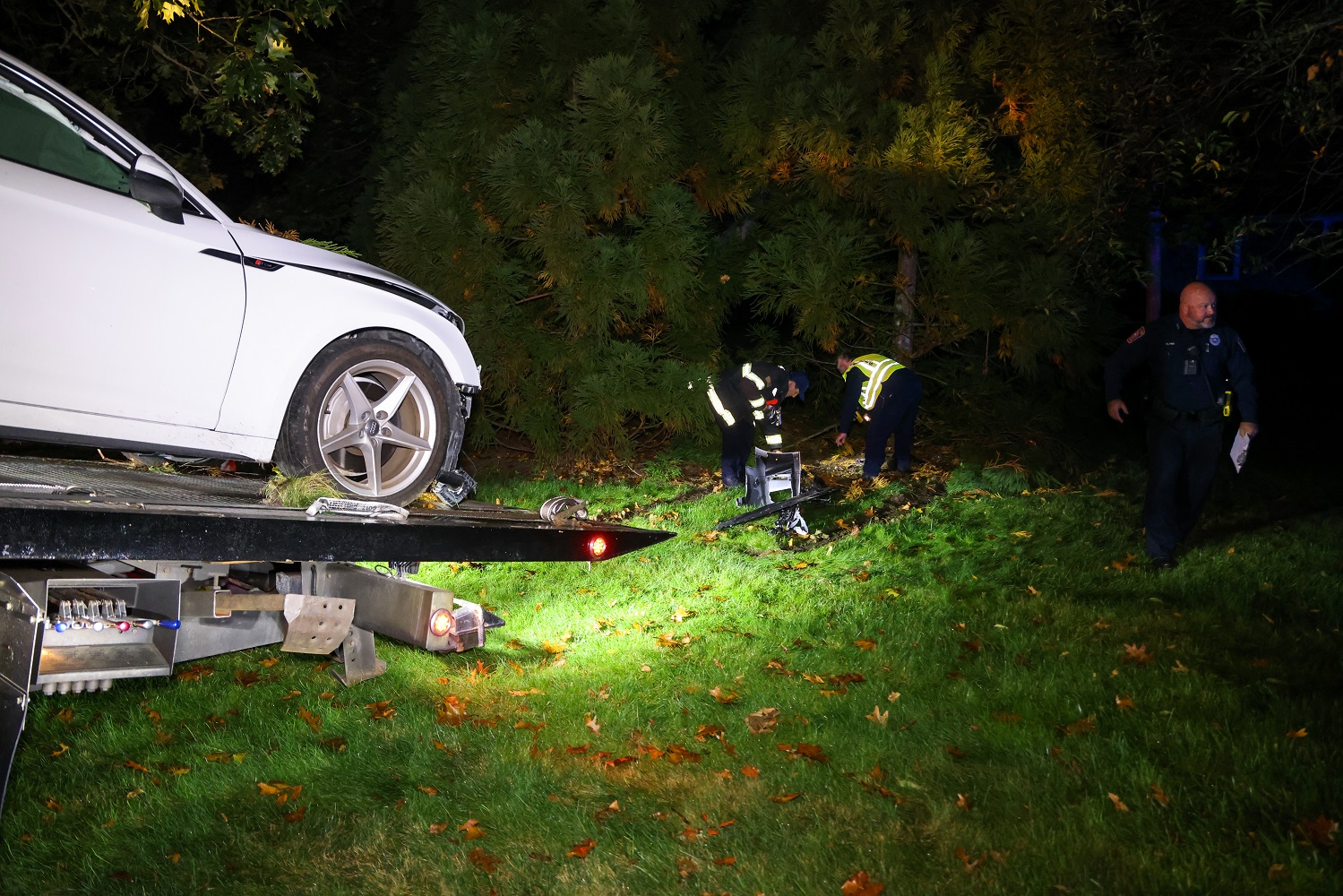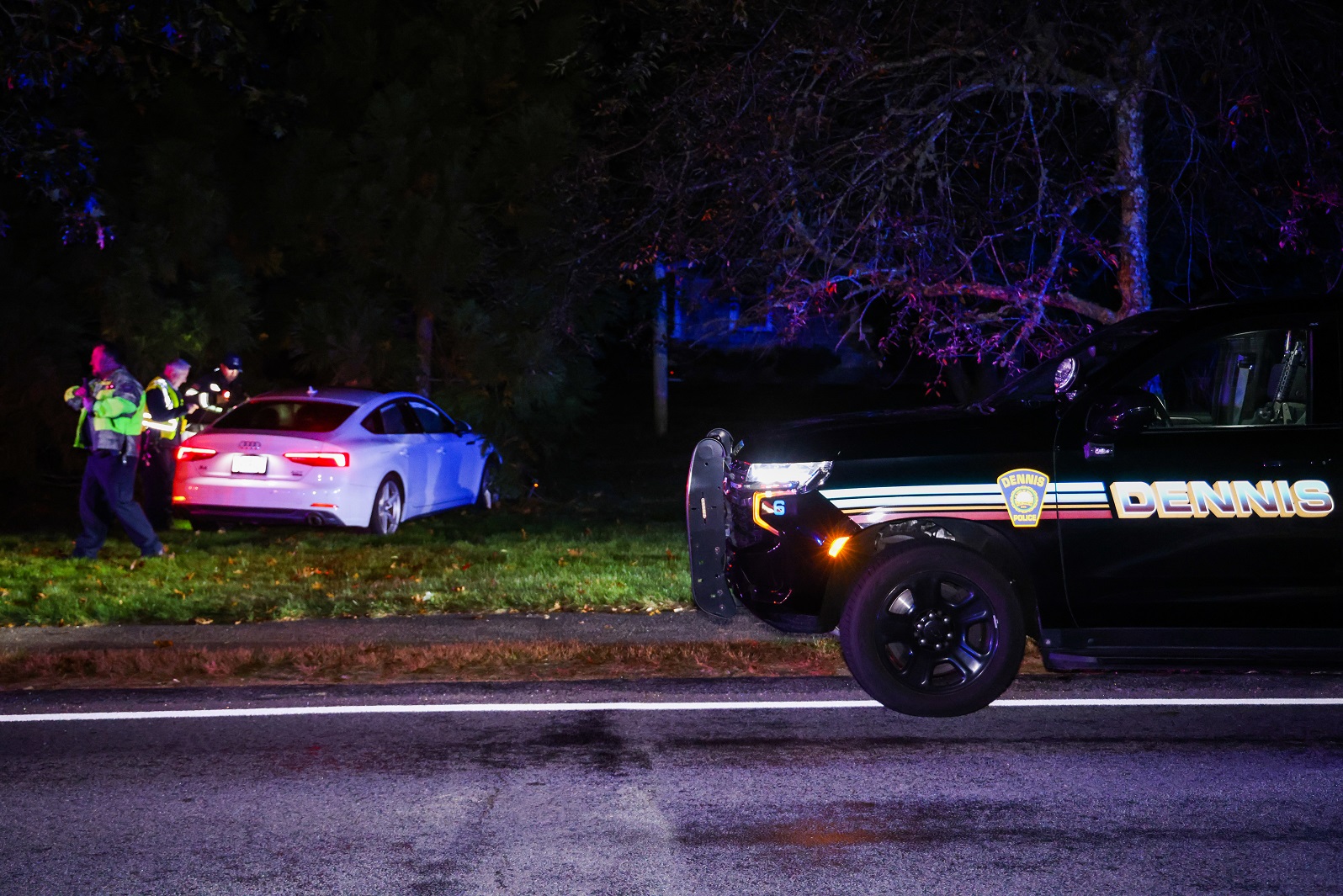 The single vehicle crash was discovered by a Dennis policeman on routine patrol. It happened on School Street in the area of Ridgedale Lane, near a bend in the road, at around 1:30 a.m.